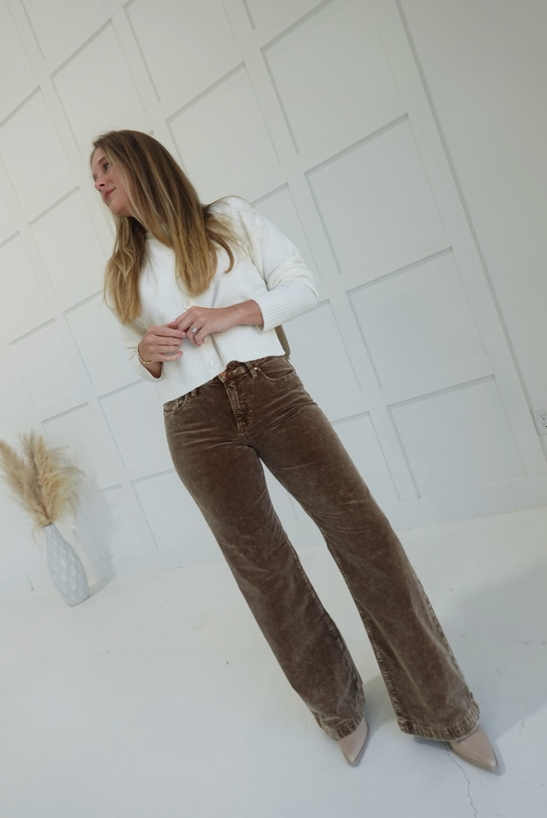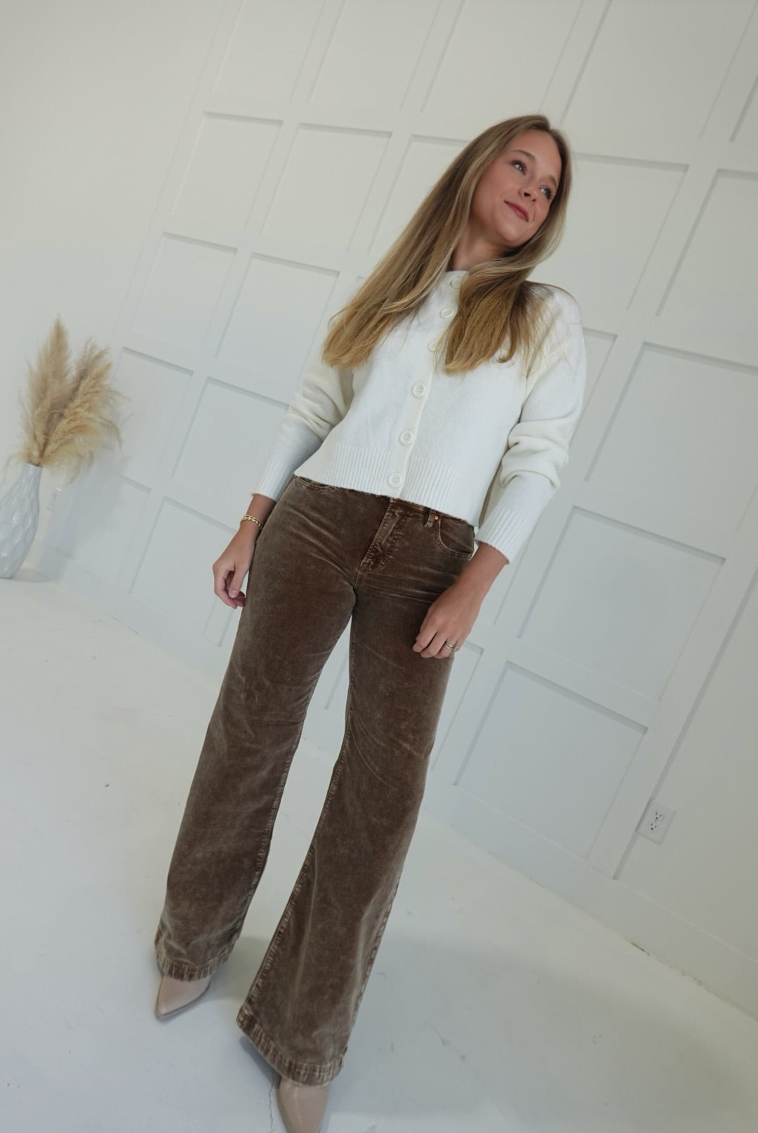 Experience comfort and style with the Trotter Corduroy Pants. These high-rise wide-leg pants offer a flattering fit and a relaxed silhouette that moves with you. Crafted from soft, durable corduroy, they provide cozy warmth and texture perfect for cooler days. Designed to elevate your everyday wardrobe, these pants pair effortlessly with your favorite tops for both casual and polished looks.