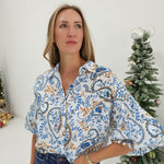 The Tully Top brings effortless style to your everyday wardrobe with its charming paisley print and relaxed bubble sleeves. This button-down design offers versatility—dress it up for brunch or keep it casual with your favorite jeans. The soft, breathable fabric feels comfortable all day long, while the flattering silhouette works beautifully for various body types. Perfect for layering or wearing solo, this top is a wardrobe essential that transitions seamlessly from season to season.