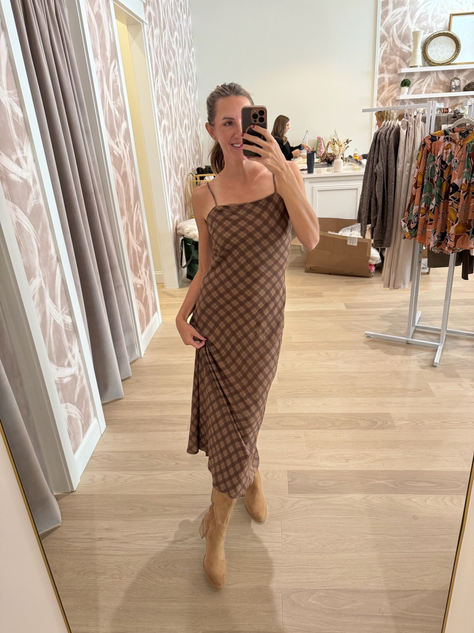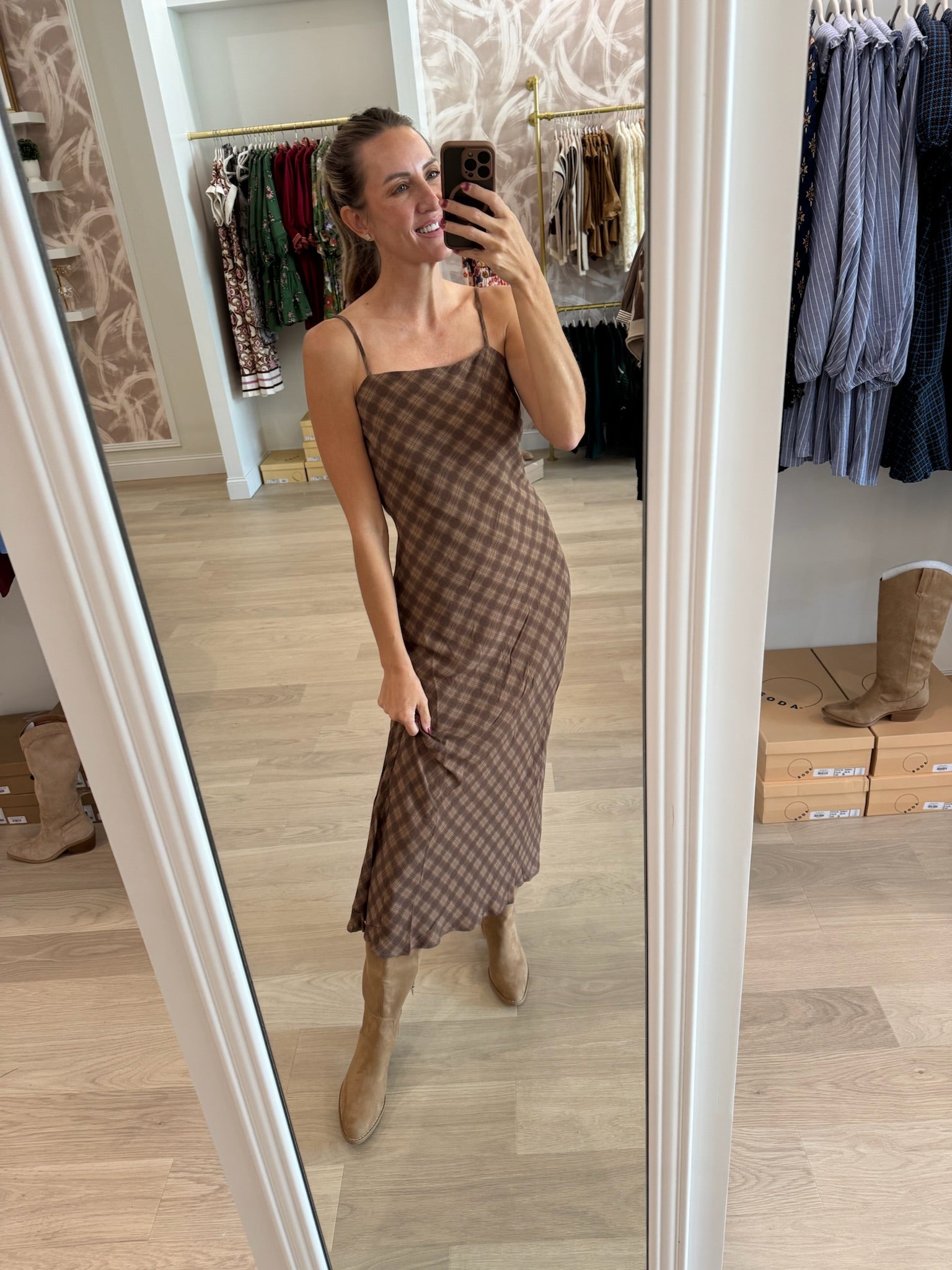 Embrace effortless style with this plaid spaghetti strap midi dress. Designed for comfort and a flattering fit, its lightweight fabric and adjustable straps make it perfect for warm days or layering. The classic plaid pattern adds timeless charm, while the midi length offers versatile wear for both casual outings and more polished occasions. This dress supports your confidence and ease throughout the day.