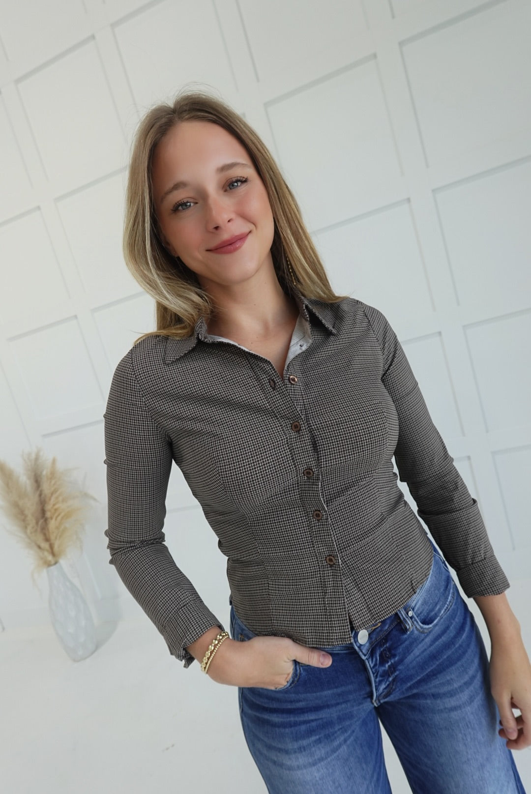 This long-sleeve button-down shirt features a classic grid plaid pattern and a comfortable collar, making it a versatile addition to your wardrobe. Its timeless design pairs easily with both casual and smart outfits, providing reliable style and comfort throughout the day.