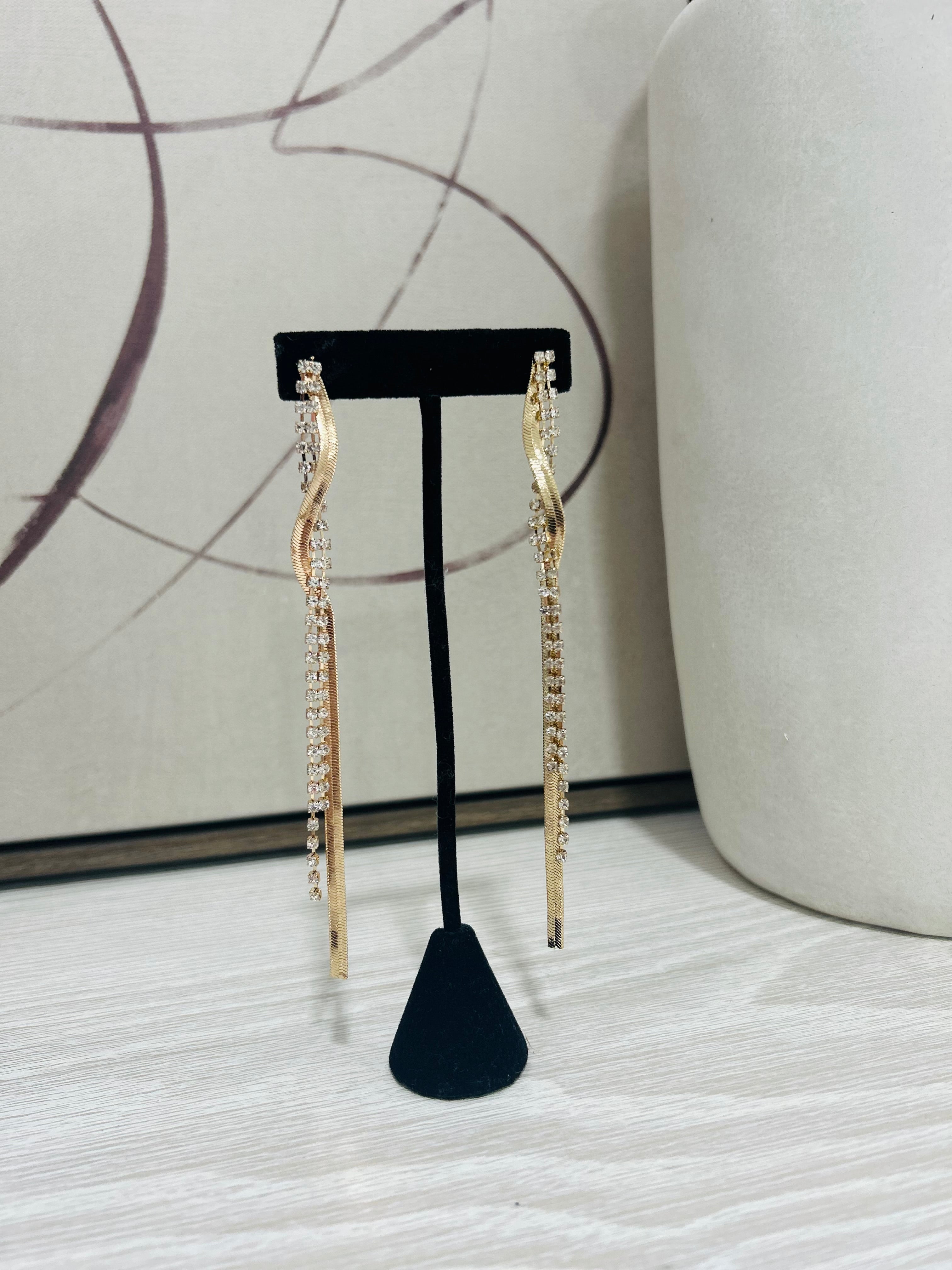 Unleash your edge with these twisted rhinestone drop earrings—a bold statement piece that commands attention. Crafted with a dynamic spiral design and glittering rhinestone accents, they catch light with every turn of your head. The snake chain construction adds an unexpected metallic flow, creating dimension that refuses to blend in. Perfect for those who dare to stand out and aren't afraid to make a dramatic entrance. Lightweight yet impactful, these earrings deliver maximum attitude with effortless wear.