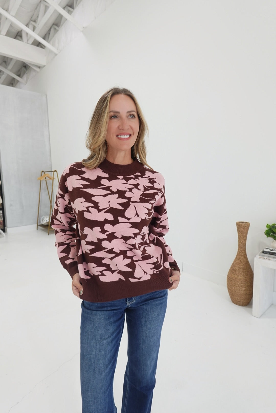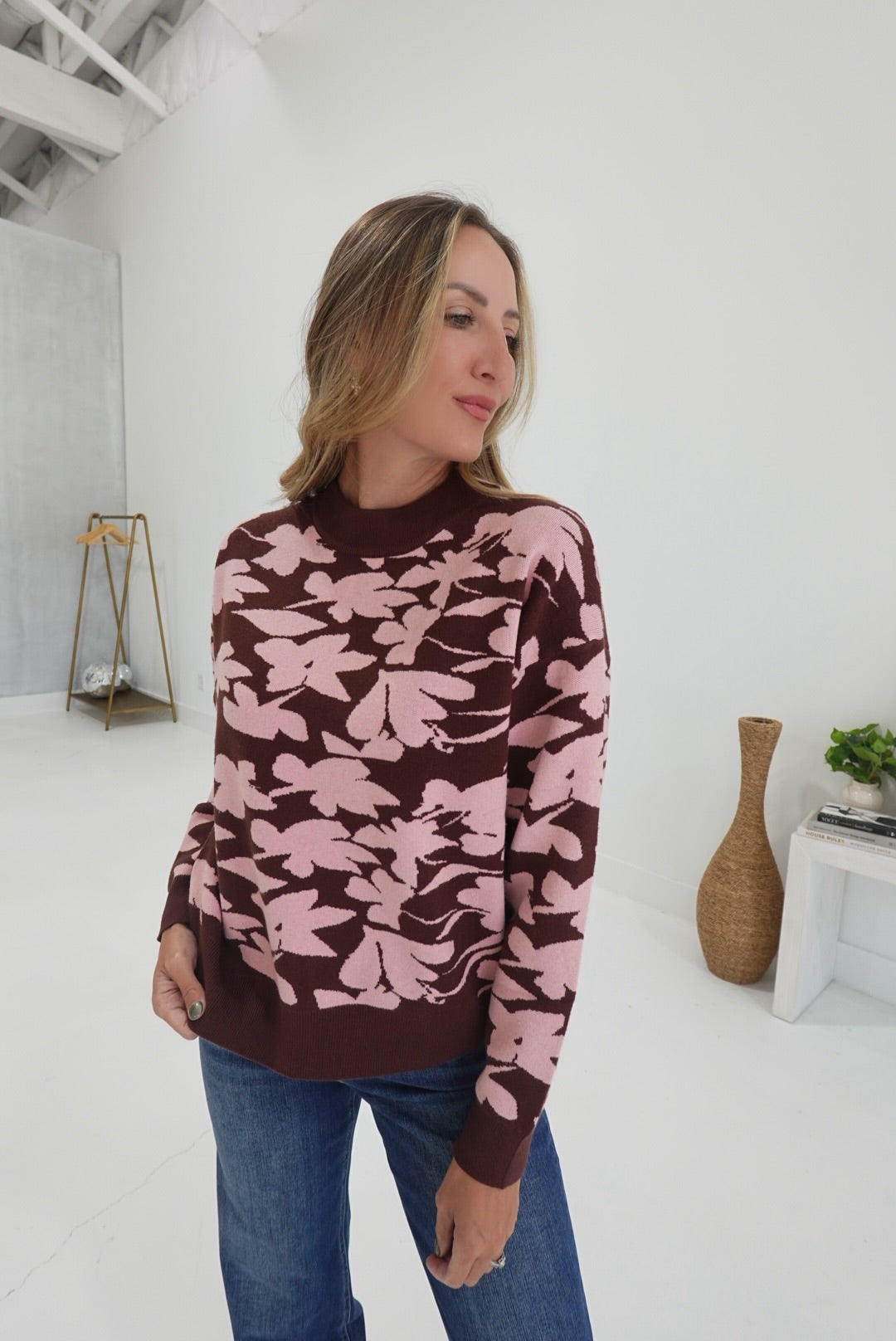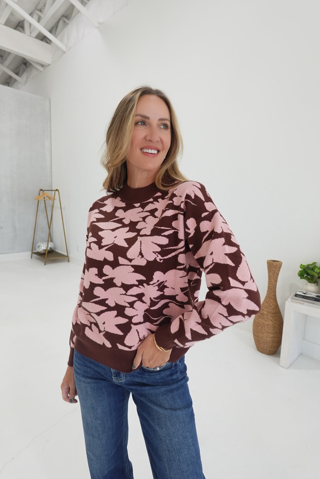 Stay cozy and stylish with the Tyner Sweater in Brown Pink. Featuring a comfortable mock neck and a delicate floral knit pattern, this sweater offers warmth while adding a touch of feminine charm to your wardrobe. Perfect for layering or wearing on its own, it’s an easy choice for everyday comfort and effortless style.