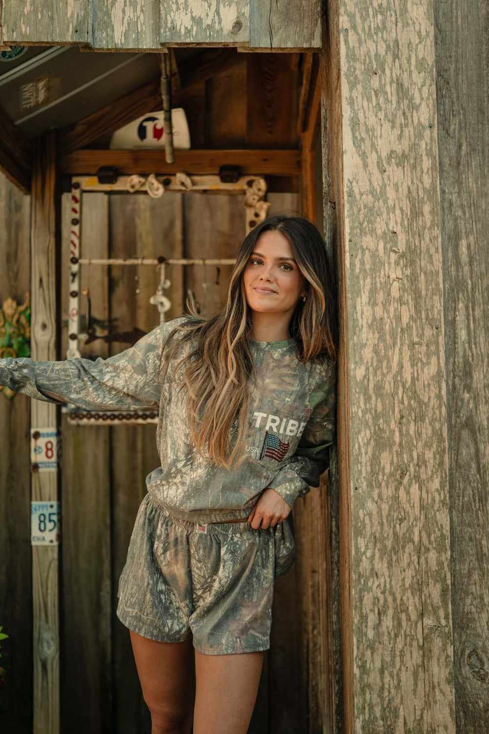 "Meet the Base Camp Boxer Short - Americana Edition, now featuring a signature USA Tribe Kelley boxer tag for a patriotic touch! These shorts are the definition of comfort and effortless style—available in Mossy Oak Break-Up® and Greenleaf® print as well as trendy solids to mix and match! Designed for more than just lounging, these ultra-soft, breathable boxers are perfect for slow mornings, laid-back days, or even stepping out in style. Pair them with the USA Base Camp Long Sleeve for a cozy matching set, or style them with your favorite tee and sneakers for an effortlessly cool look. Whether you're lounging at home or running errands, these are the go-to shorts you’ll never want to take off!"