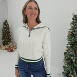 This Varsity Sailor Collar Sweater combines classic style with cozy comfort. The distinctive sailor collar adds a charming, timeless touch, while the long sleeves keep you warm during cooler days. Crafted for everyday wear, this sweater offers a relaxed fit that moves with you, making it an easy choice for both casual outings and laid-back workdays. Embrace a stylish look that supports your comfort all day long.