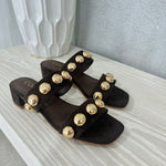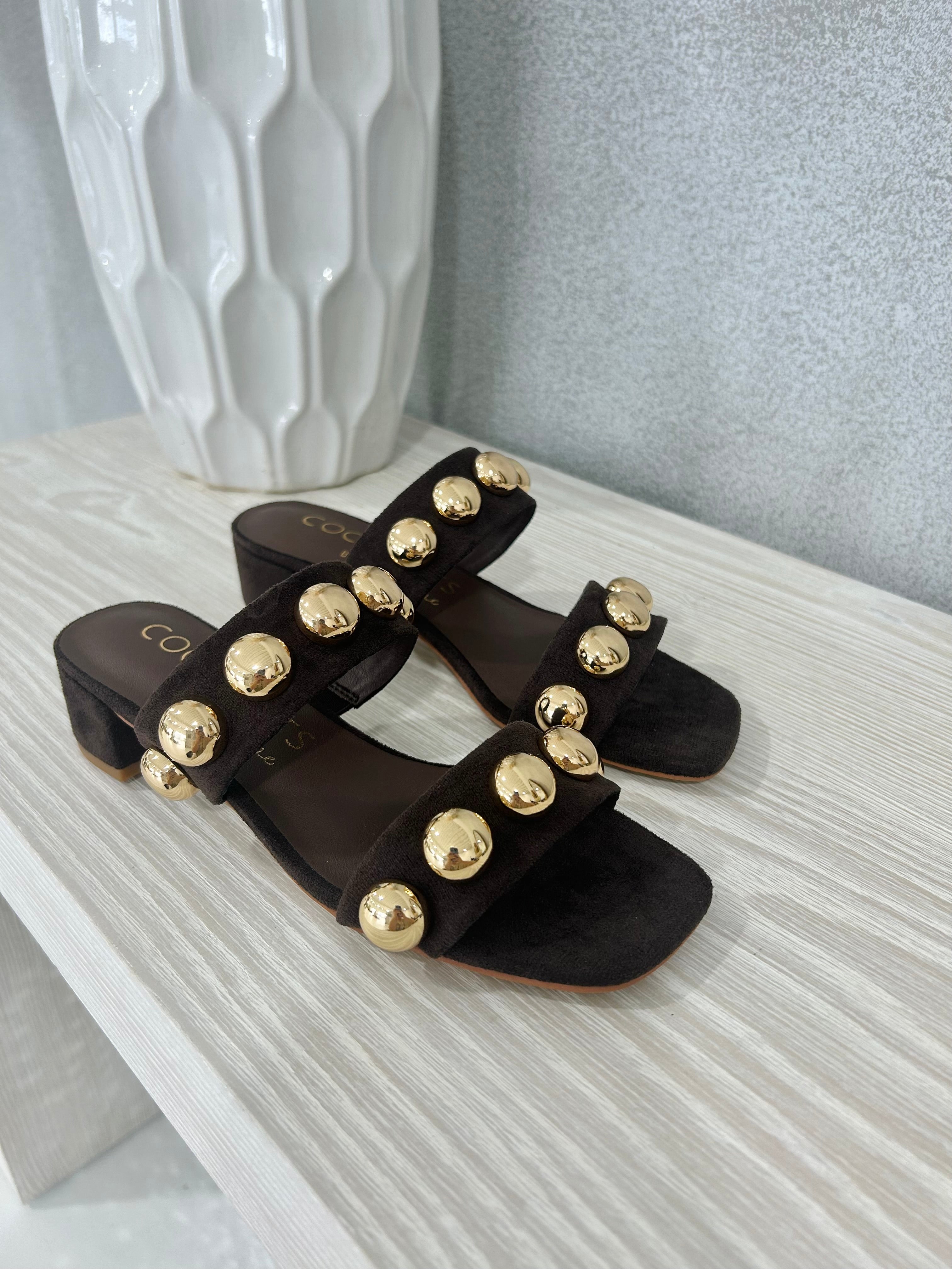 Step into effortless style with the Venus Dress Slide Sandal by Coconuts from Matisse. Featuring a soft sueded fabric upper and elegant dome ornament embellished straps, these slides offer a chic look for any occasion. The padded insole and synthetic lining provide comfort, while the slip-on design ensures easy wear. With a modest 1.75" heel, they add just the right amount of lift. Perfect for dressing up or down, these sandals combine fashion and comfort seamlessly.