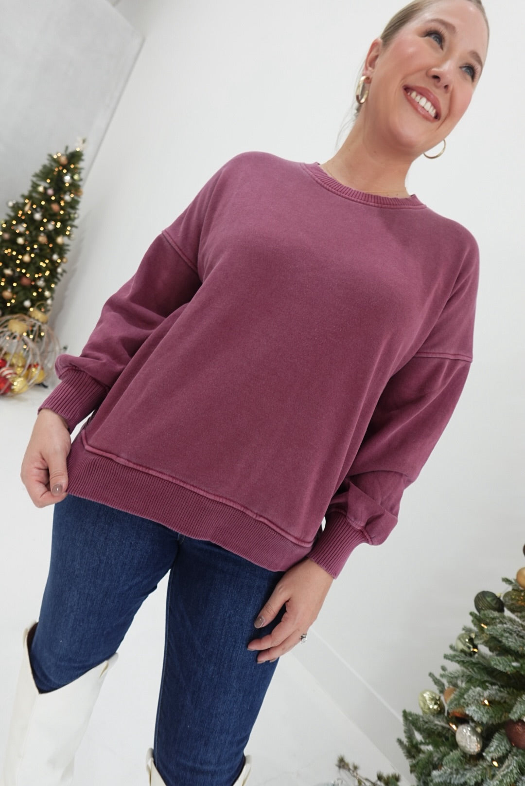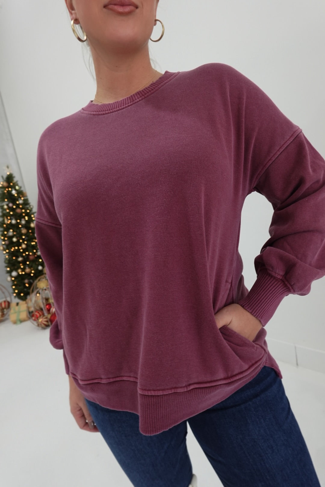 - Pigment Dye Fleece Hi Low Hem Pullover
