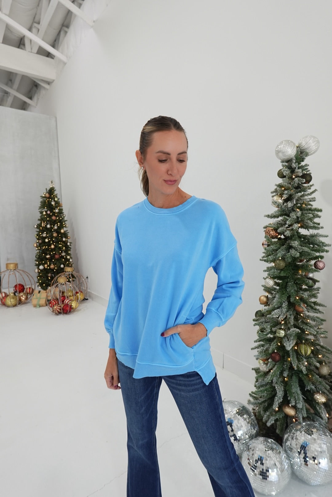 - Pigment Dye Fleece Hi Low Hem Pullover