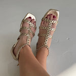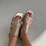 Unleash your bold side with the Verus Gladiator Sandal. This daring design features striking scallop cutouts that frame the foot with architectural precision, creating an edgy yet refined silhouette. The gladiator-inspired straps deliver confident style while the neutral nude tone keeps it versatile enough to command any outfit. Perfect for those ready to make a statement without apology.