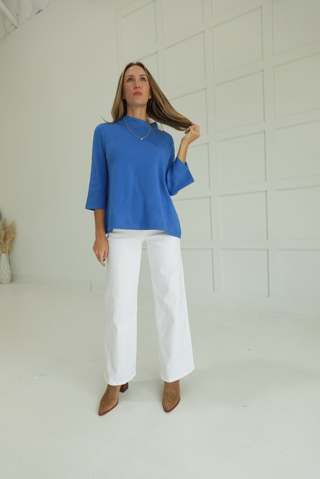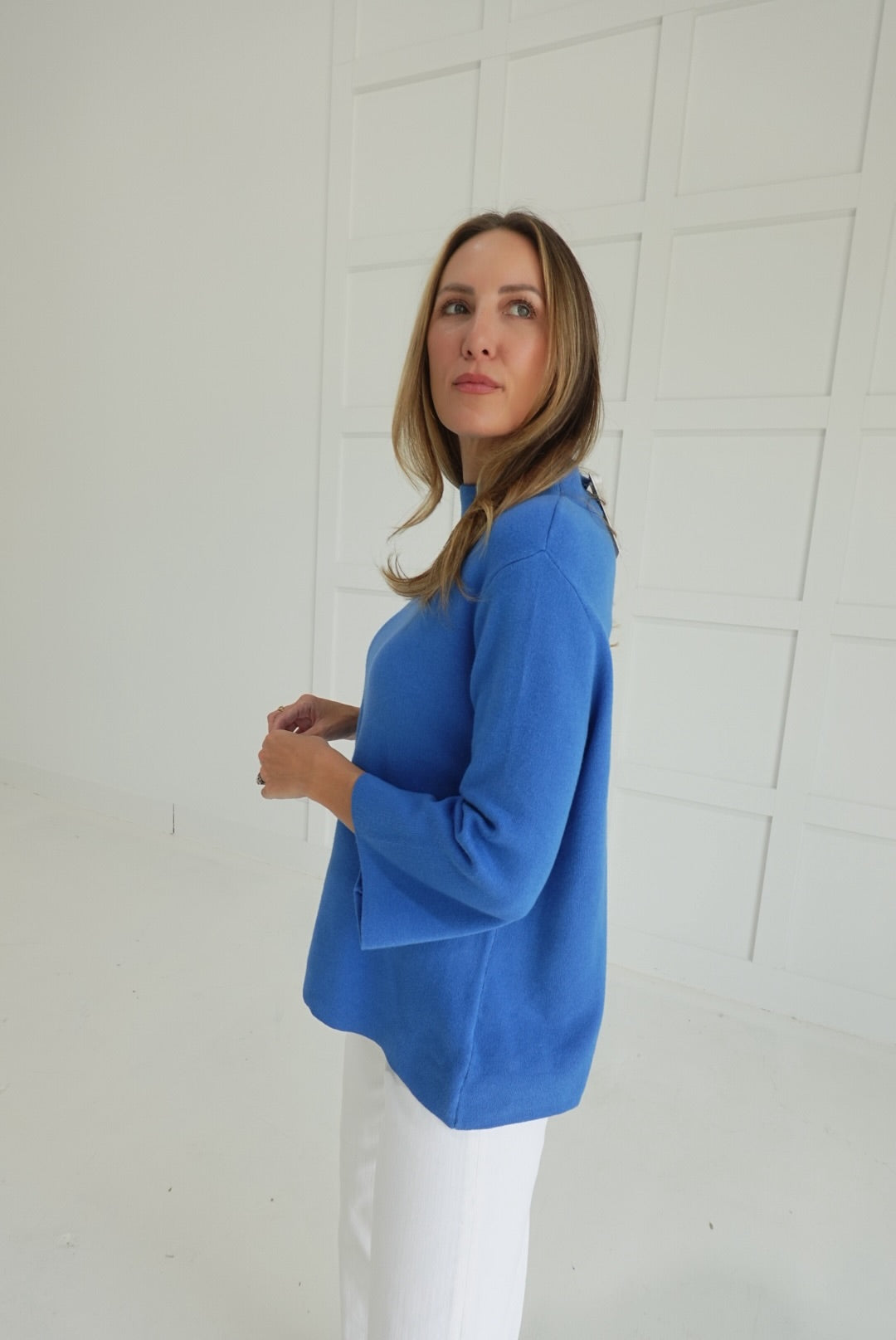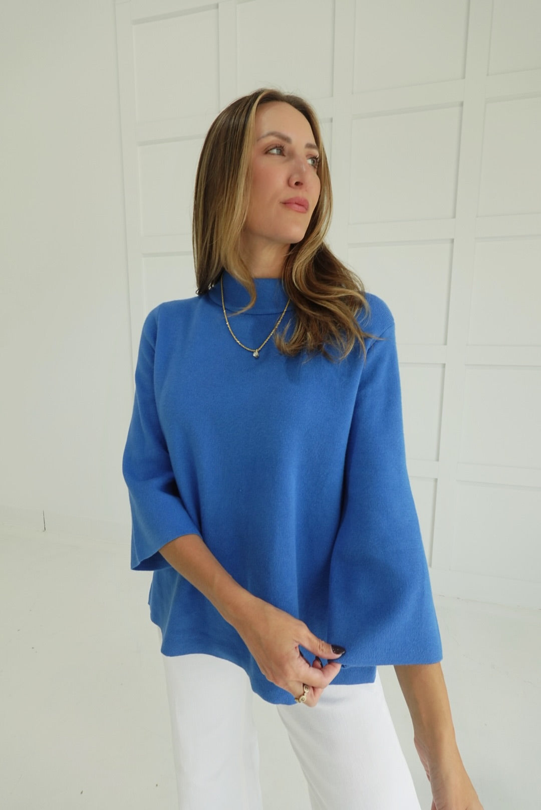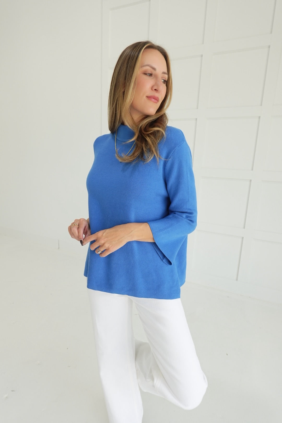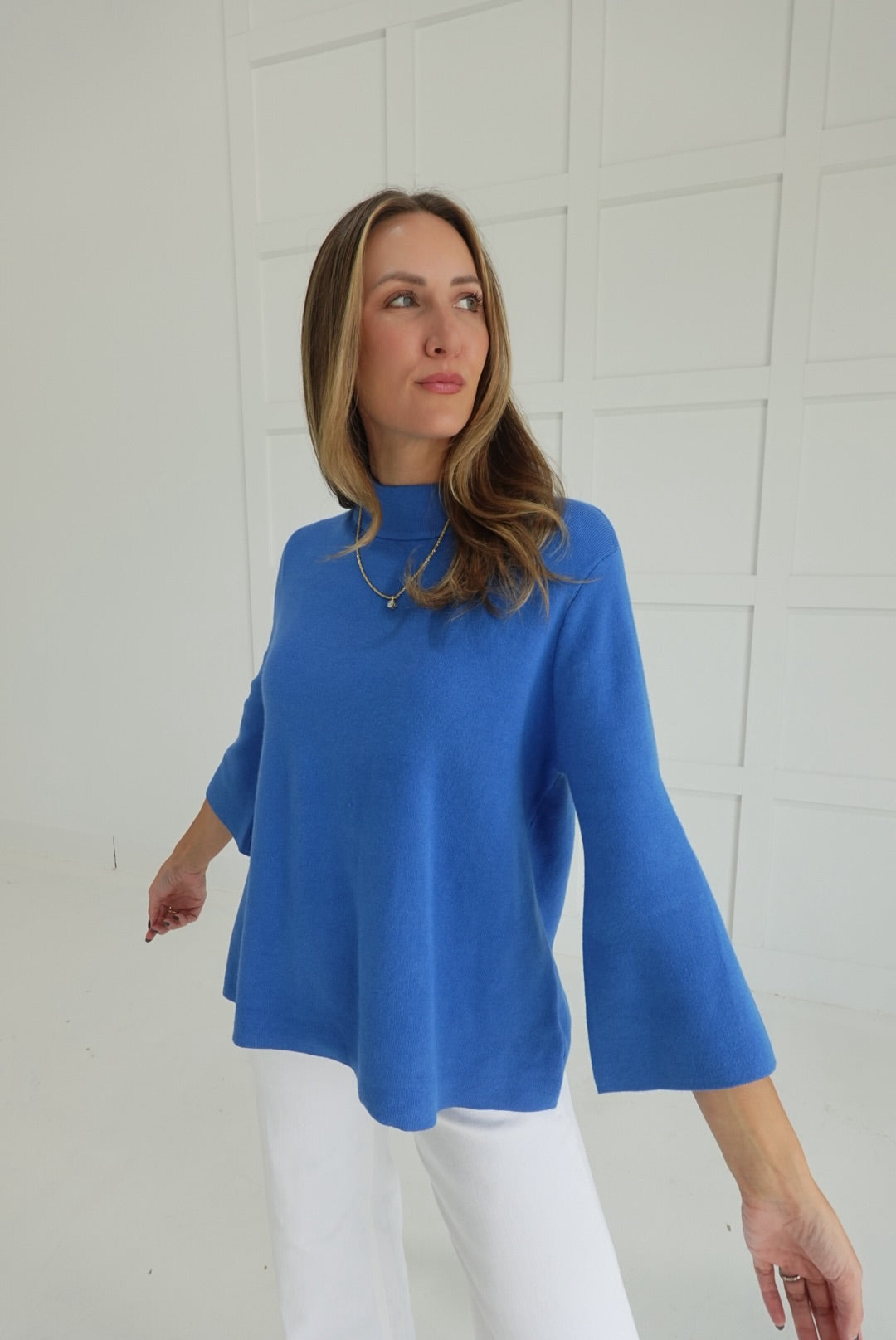 The Vista Belle Sweater features a cozy mock neck and elegant bell sleeves, blending comfort with a touch of style. Its soft fabric keeps you warm while the bell sleeves add a graceful silhouette, making it perfect for both casual and dressier occasions. This pullover sweater is designed to support your everyday wardrobe with effortless charm.