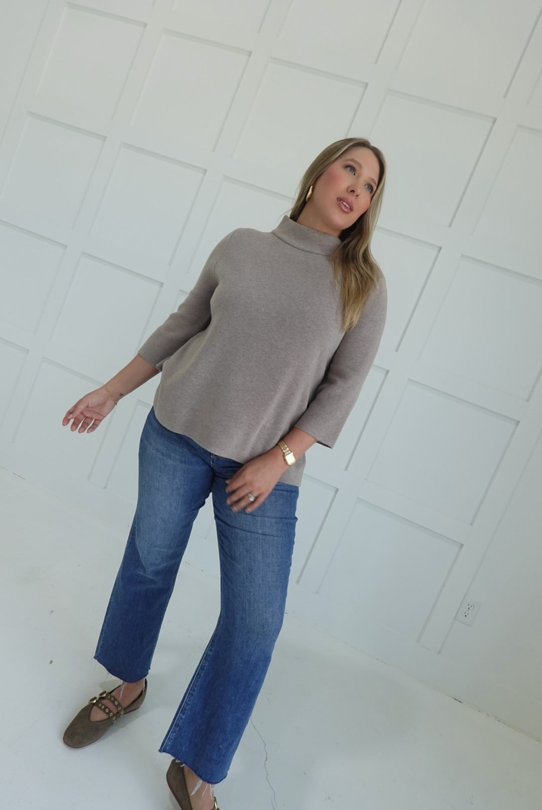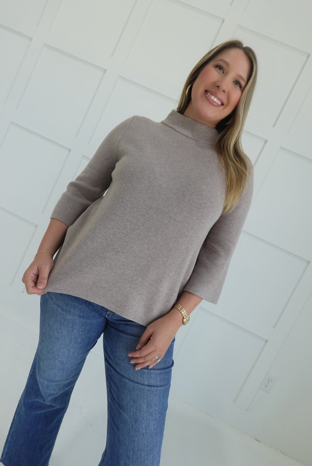 The Vista Belle Sweater in Mocha features a cozy mock neck and elegant bell sleeves, blending comfort with a touch of style. Its soft fabric keeps you warm while the bell sleeves add a graceful silhouette, making it perfect for both casual and dressier occasions. This pullover sweater is designed to support your everyday wardrobe with effortless charm.