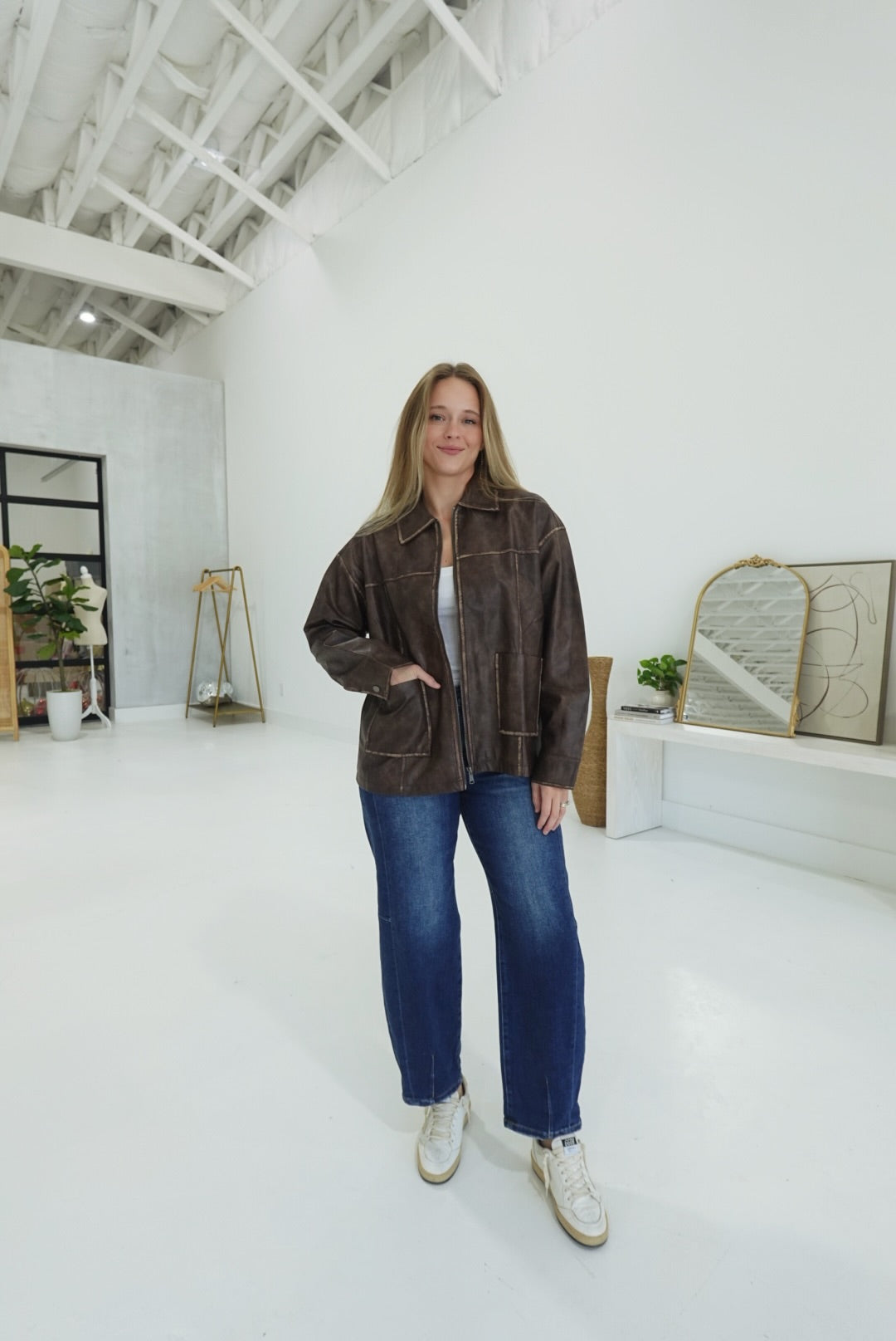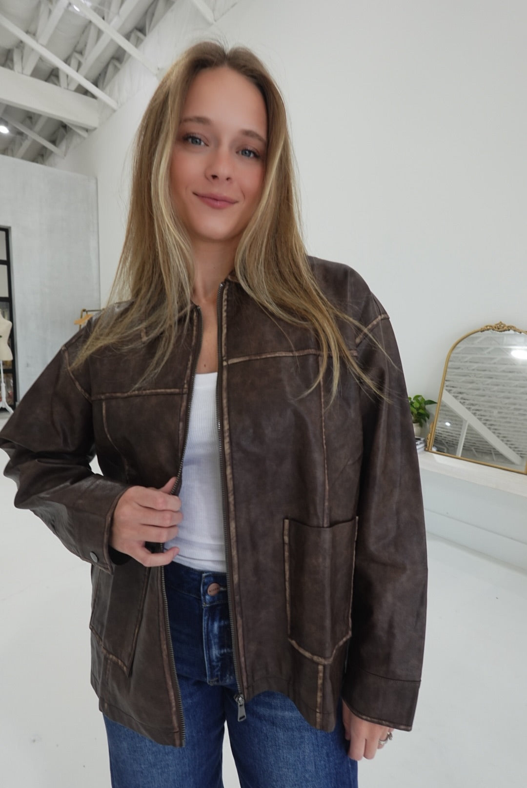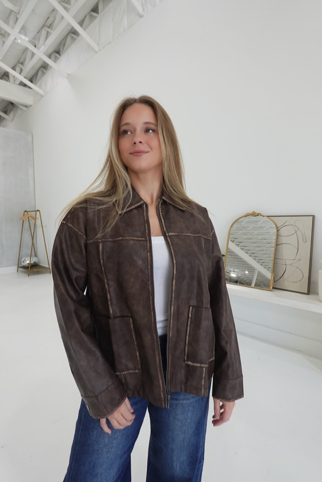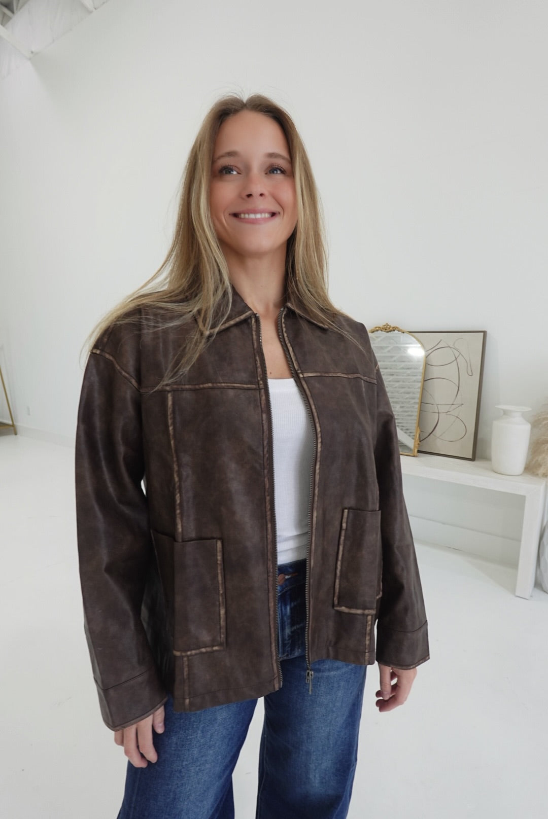 Experience bold style with the Wild Side Leather Jacket in brown, crafted from washed faux leather for a distinctive, worn-in look without compromising on ethical choices. Its durable material offers a sleek, comfortable fit that’s easy to care for and maintain. This jacket is perfect for adding an edgy touch to your wardrobe while staying confident in a cruelty-free alternative.