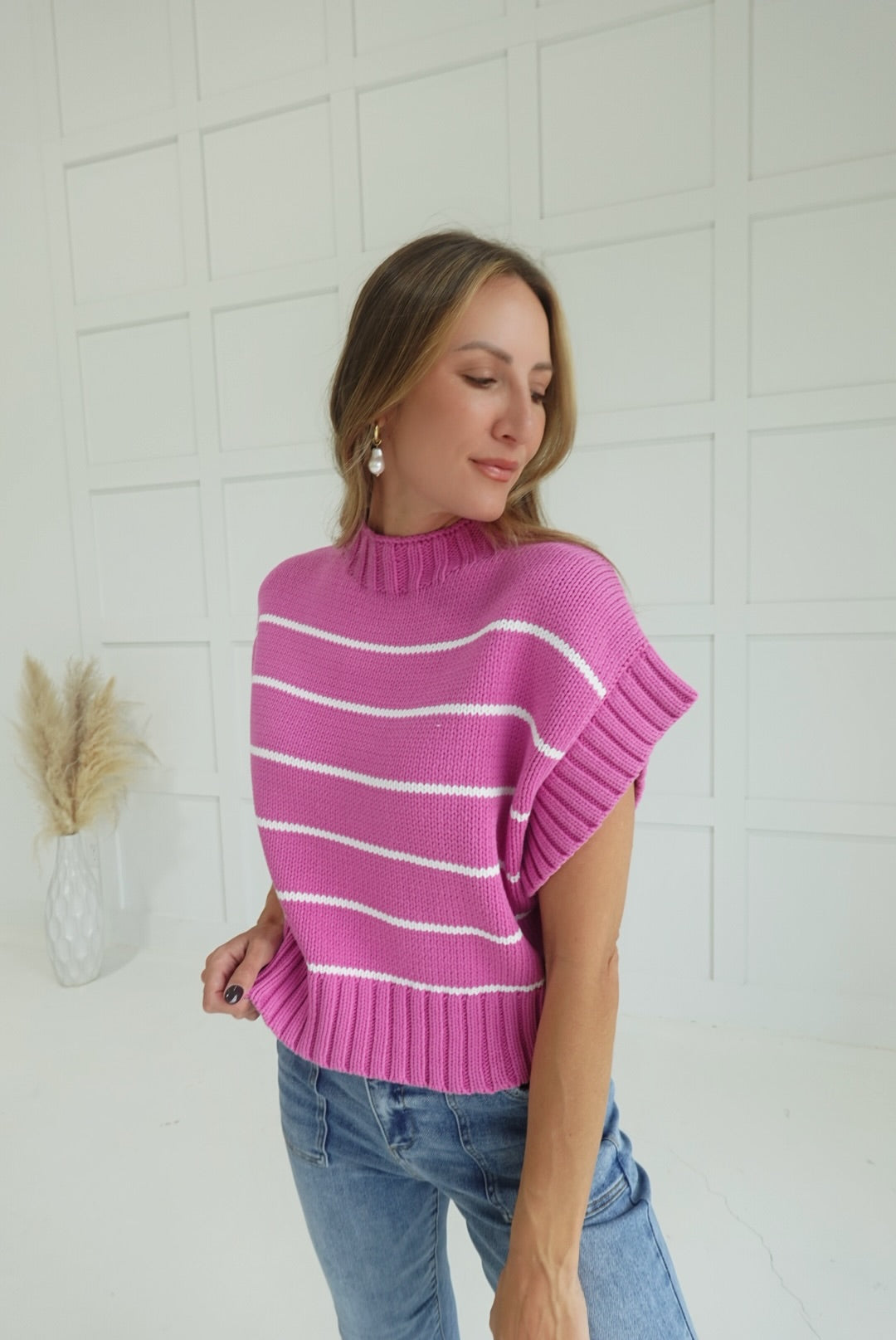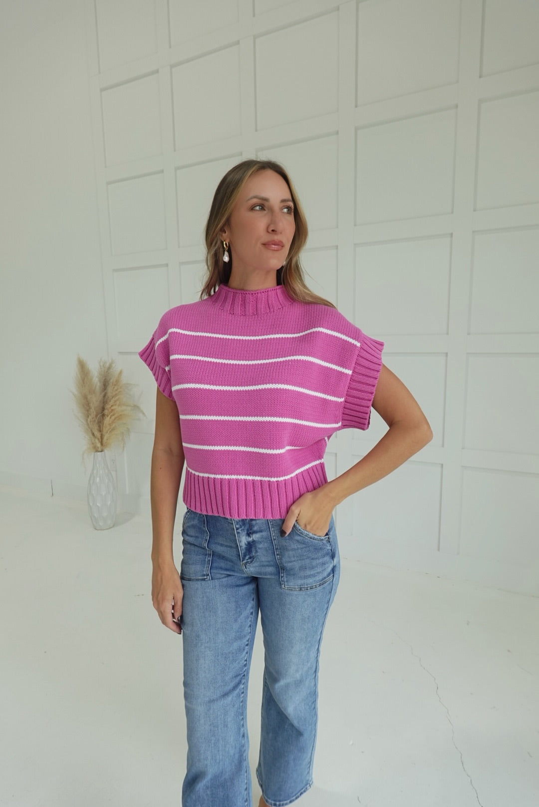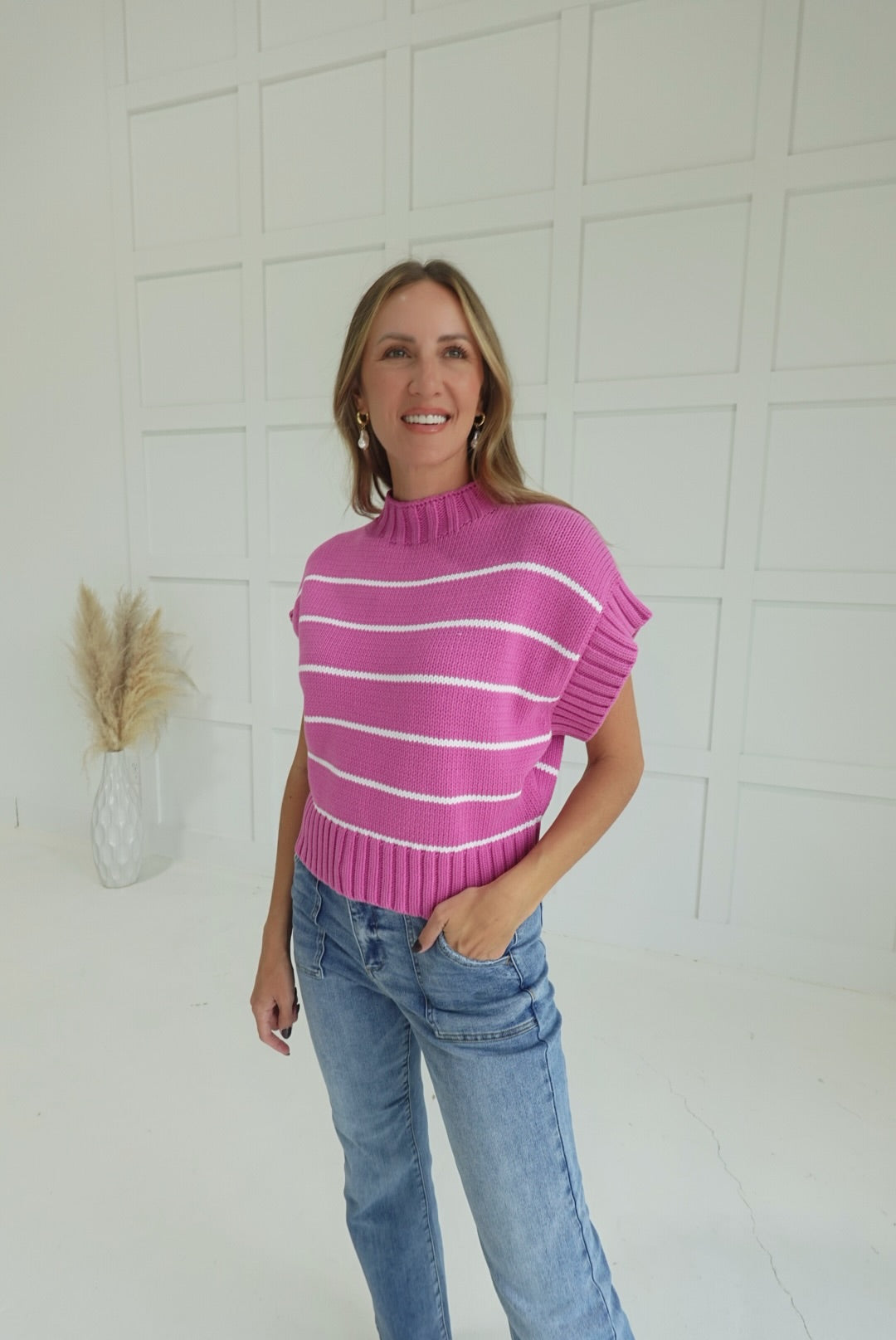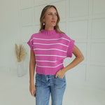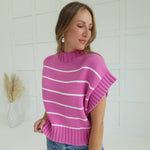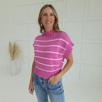 Get ready to stand out in the Worth Everything Sweater! This bright mauve striped crop sweater features a mock neck design for a chic and stylish look. Perfect for adding a pop of color to any outfit, this sweater is worth every penny!