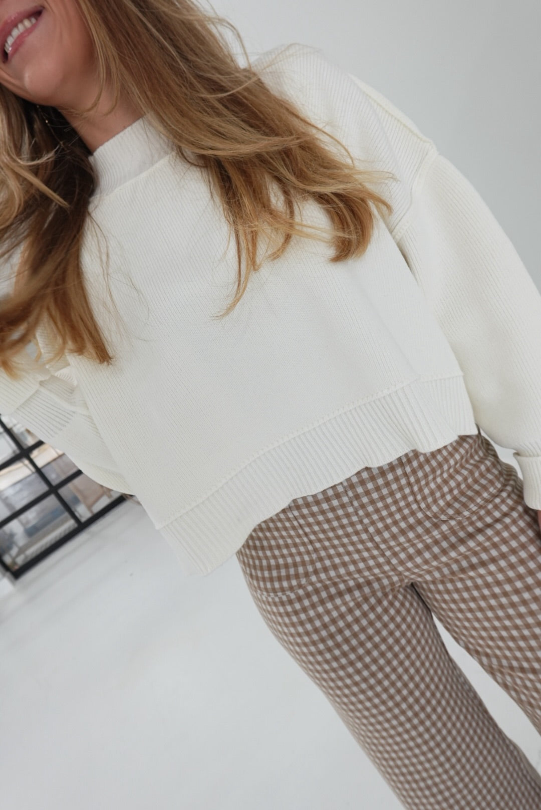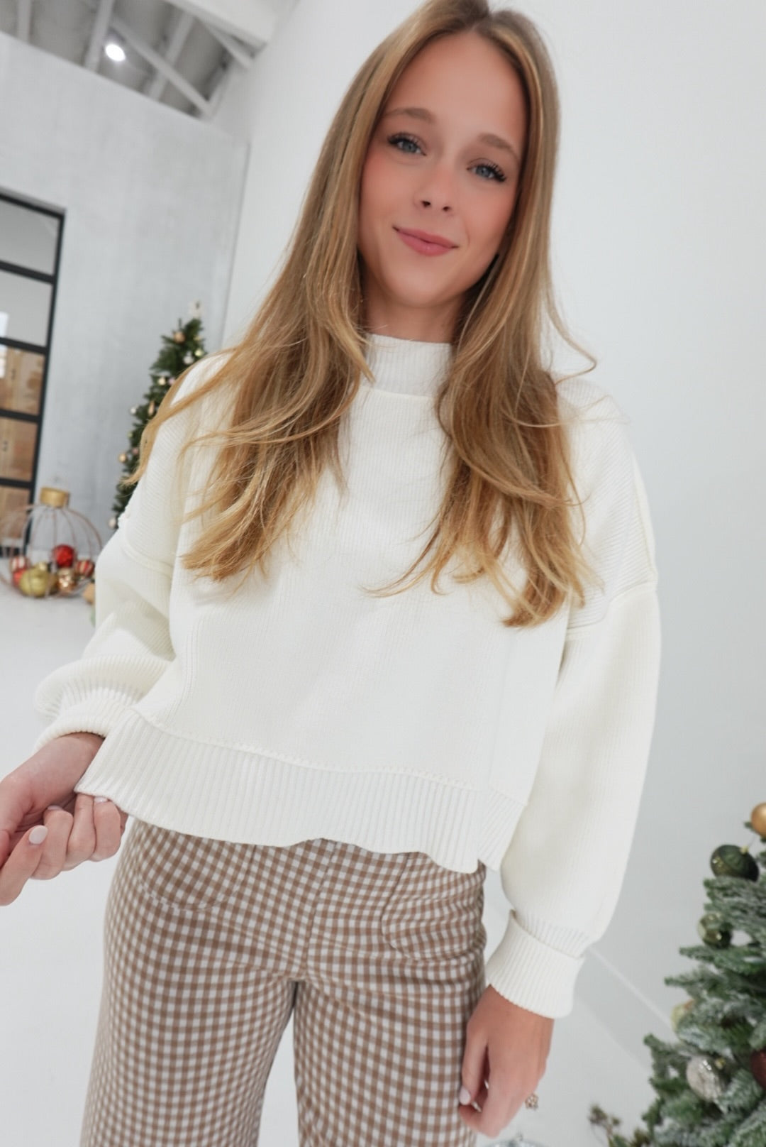 Embrace comfort and style with the Worth Everything Sweater in Ivory. This oversized cropped sweater features side slits that add ease of movement and a relaxed fit perfect for layering. Crafted from soft fabric, it provides cozy warmth while maintaining a modern, effortless look. Whether dressing up or down, this versatile piece supports your desire for comfort without compromising on fashion.