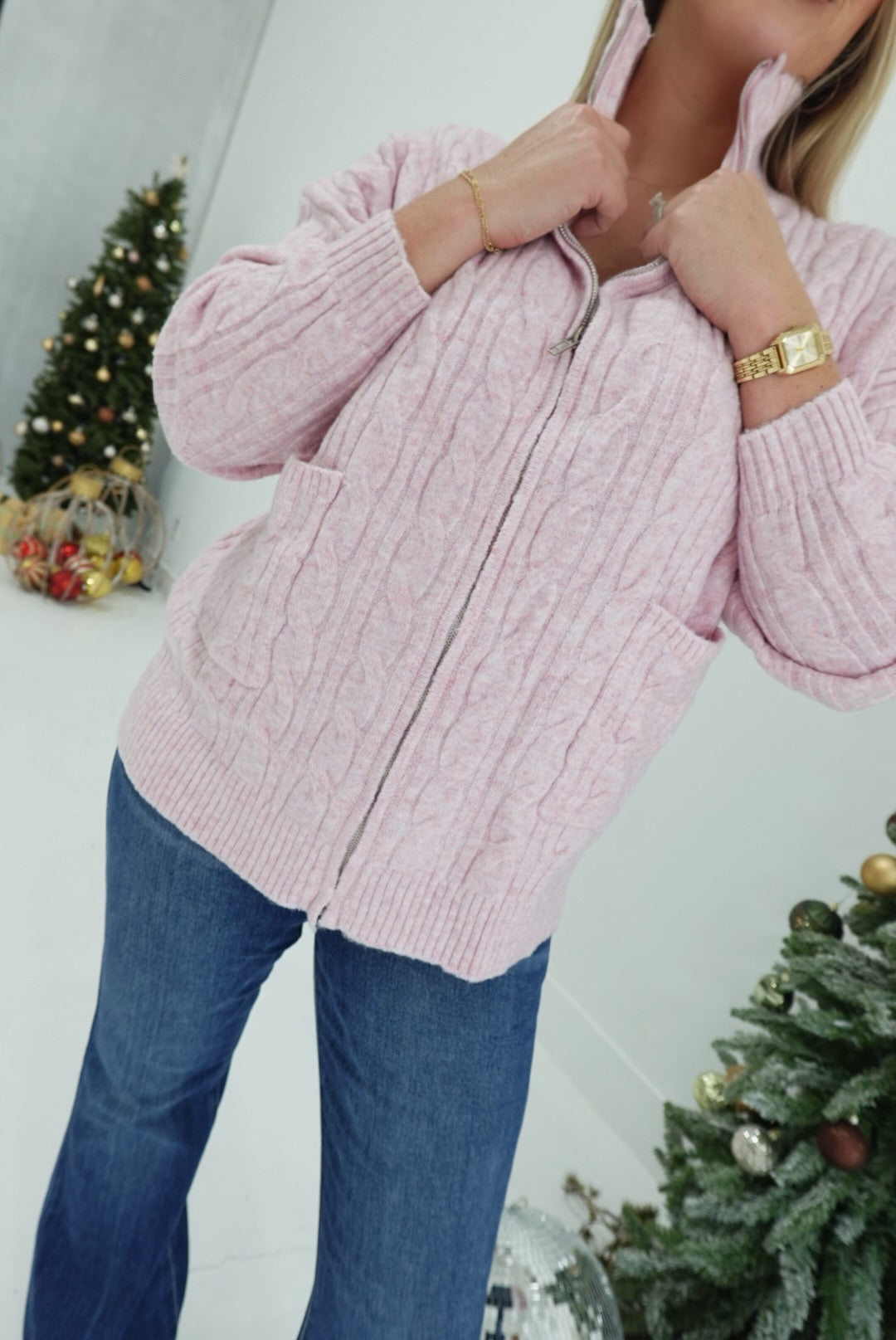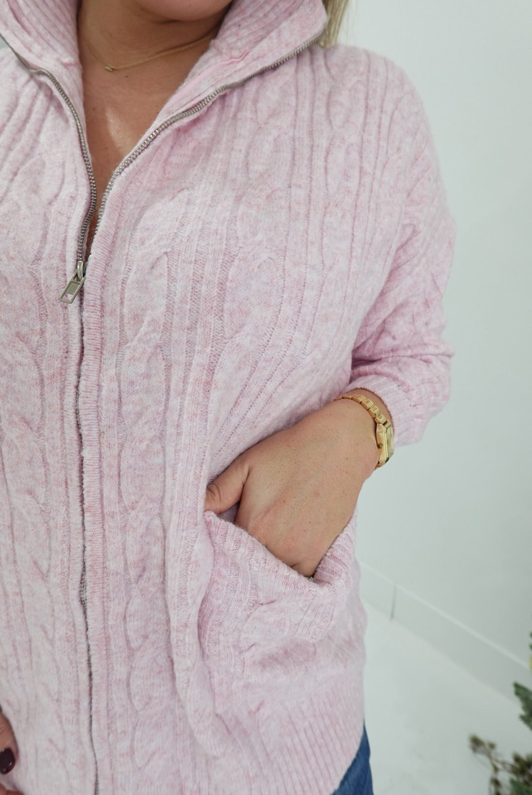 Layer up with the Xina Sweater Top, a versatile cable knit piece that transitions seamlessly from season to season. Featuring a convenient zipper front, this sweater jacket offers easy on-and-off styling while the textured cable knit adds visual interest and warmth. Perfect for casual days or dressed-up occasions, the Xina adapts to your lifestyle. Whether you're heading to the office, running errands, or enjoying time outdoors, this cozy essential keeps you comfortable and looking put-together.