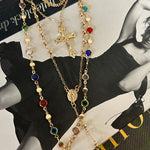 Dare to make a statement with this striking Y multi-stone lariat necklace. Featuring an eye-catching arrangement of mixed gemstones suspended from an elegant Y-shaped chain, this piece commands attention with its bold geometry and dynamic design. The layered stones catch light beautifully, creating movement and dimension that elevates any outfit. Perfect for those who refuse to blend in—wear it as your signature piece that speaks volumes about your fearless style.