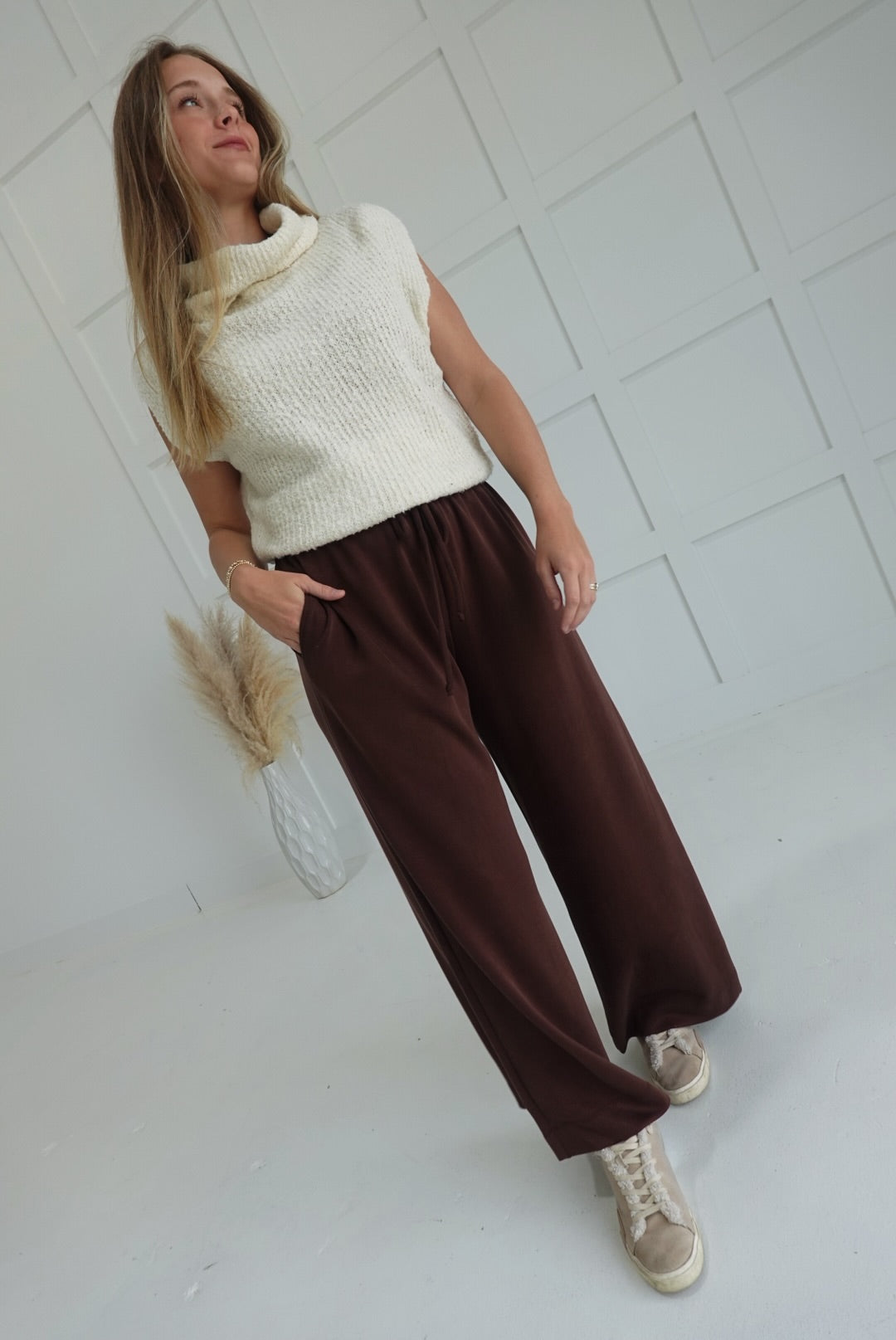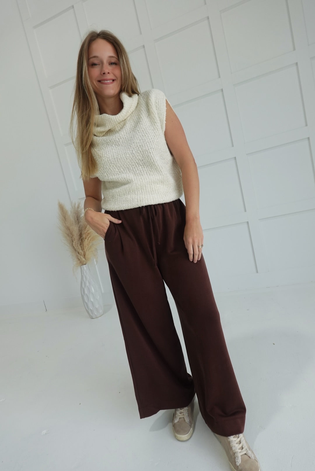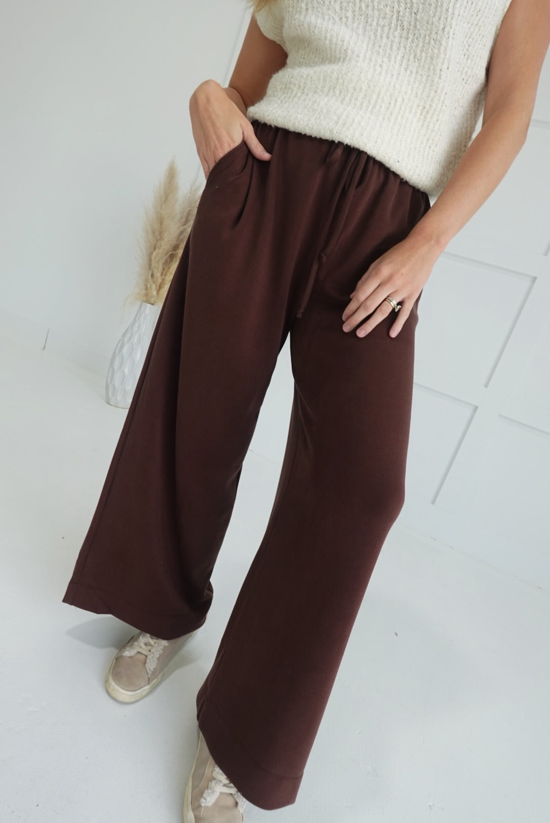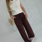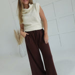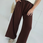 These Zina Wide Leg Pants feature a comfortable ruffle waistband that provides a flattering, adjustable fit. Designed with a relaxed wide-leg silhouette, they offer ease of movement and a stylish, laid-back look. The back pocket adds functional detail, perfect for essentials. Ideal for both casual and polished outfits, these pants combine comfort with effortless style.